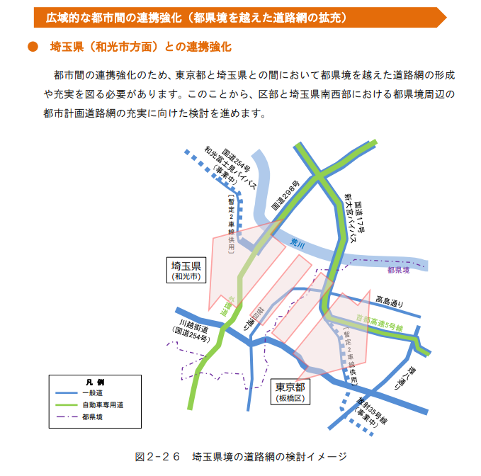 東京都では、2016年3月に策定した『東京における都市計画道路の整備方針(第四次事業化計画)』において、埼玉県(和光市方面)との連携強化が謳われていました。