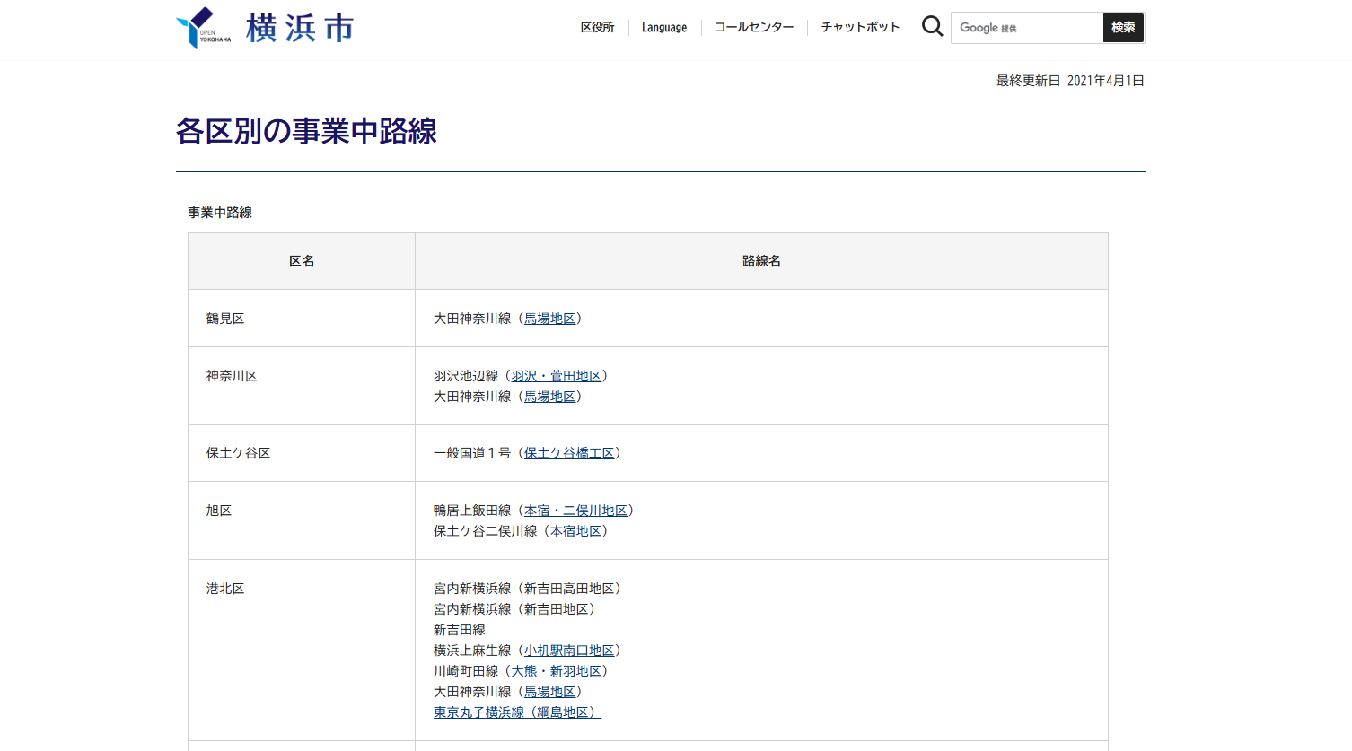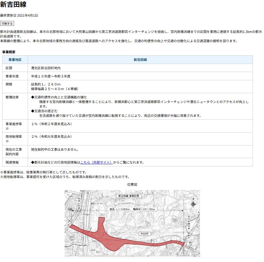 これについて、横浜市に新吉田線について問い合わせたところ、「このページは2021年から更新されていない。このような状態になっていることに指摘されて気付いた。修正します。」ということでした。