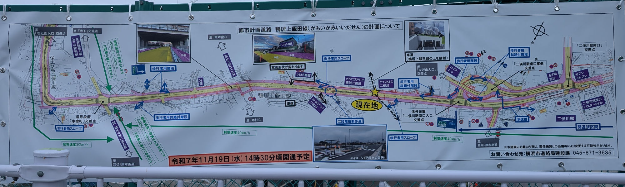鴨居上飯田線の二俣川駅東側区間、及び保土ケ谷二俣川線(本宿地区)について、2025年11月19日14時30分に交通開放される予定です。