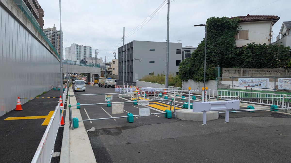 なお、この写真⑨の部分には、これまで横断歩道準備のためか、切下げと点字ブロックが準備されていましたが撤去されました。記事冒頭の現地のお知らせでは横断歩道設置予定とはなっておらず、横断歩道は設置しない模様です。
