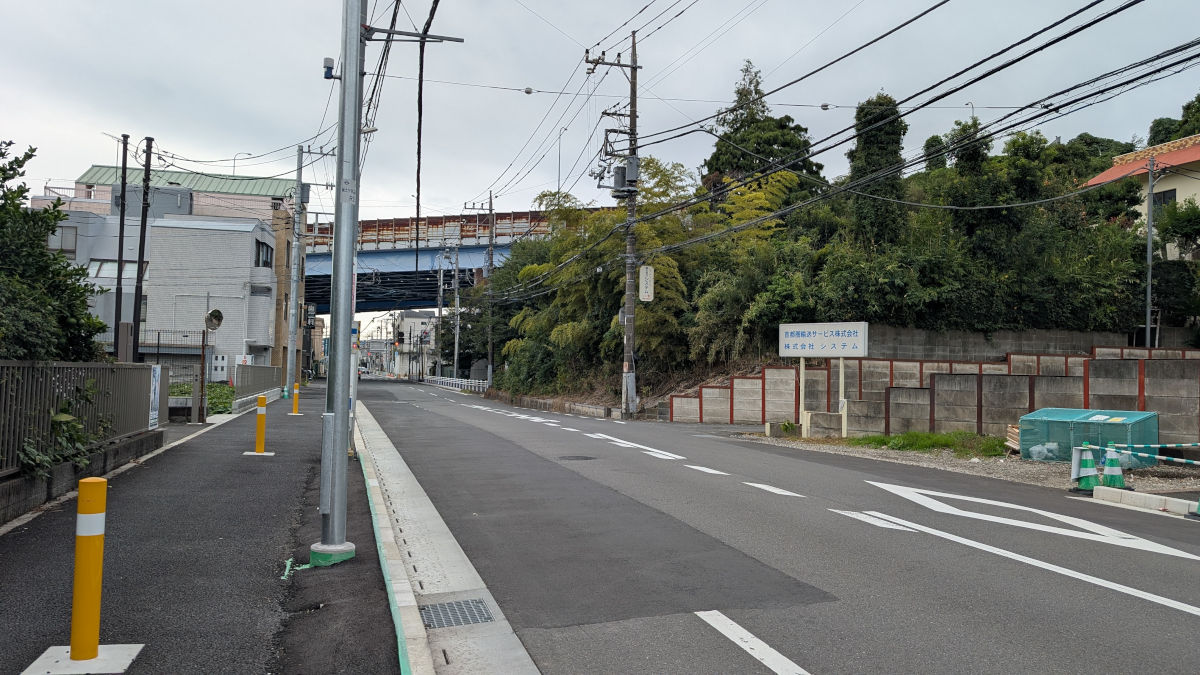 現道拡幅区間は、東側(写真左側)の歩道整備が概ね完了していました。