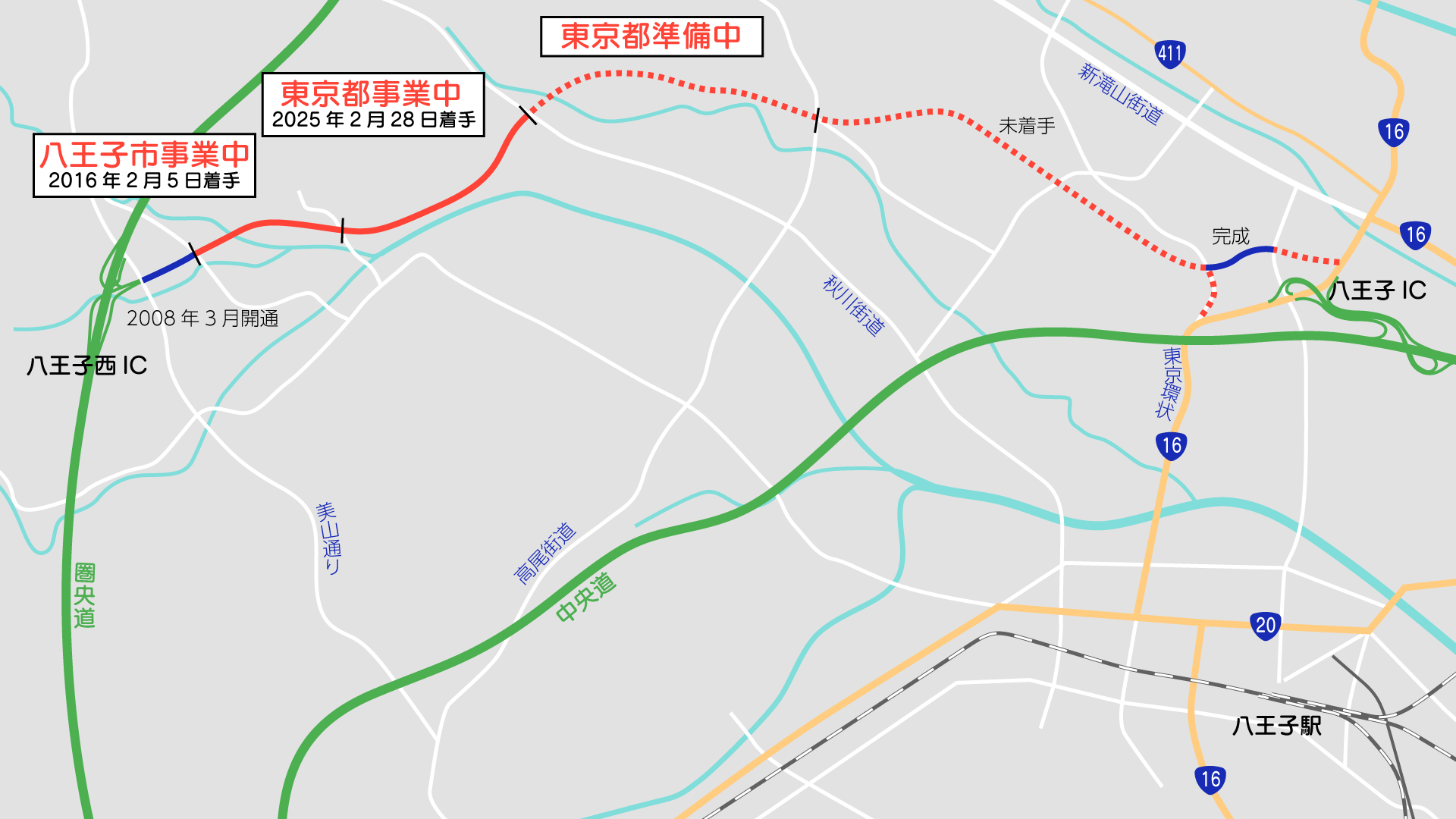 道路・街路整備 八王子「北西部幹線道路」 区画整理入口まで2026年頃に先行開通か? 進捗2025.10