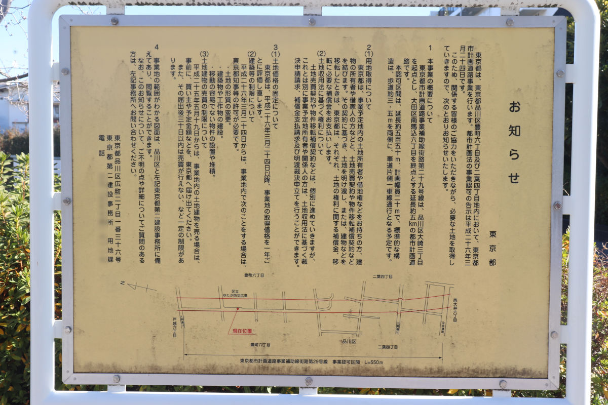 補助第29号線は品川区大崎三丁目から大田区南馬込六丁目に至る延長約5,040mの都市計画道路です。このうち上記で示した大原通りから立会道路までの区間では、「豊町区間」として道路を整備する事業を行っています。