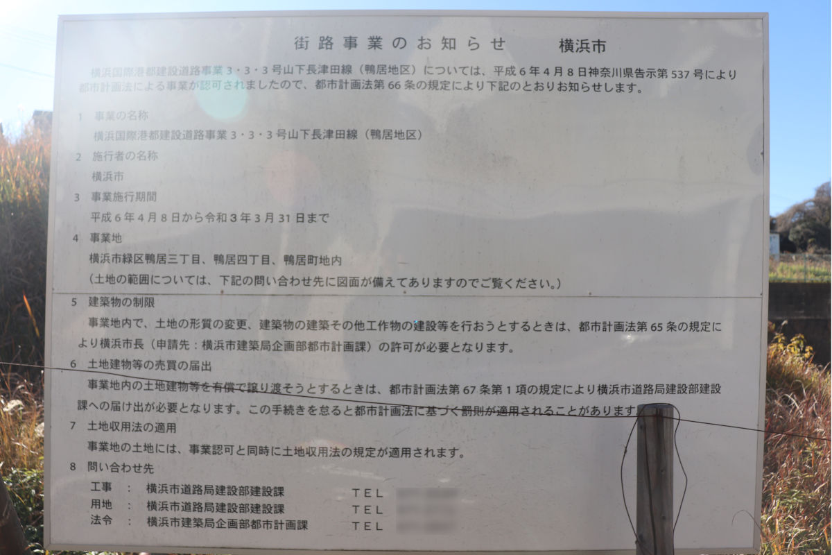 横浜国際港都建設計画道路3・3・3号山下長津田線は、横浜市中区山下町から横浜市緑区長津田町に至る延長約19,820mの都市計画道路です。このうち上記図に示した区間では、街路を整備する事業が行われています。